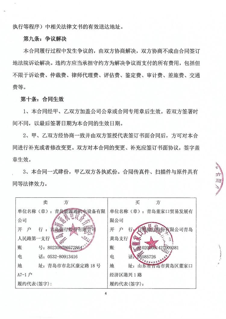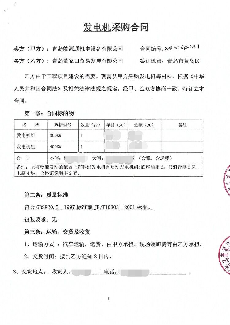 我司與青島董家口貿(mào)易發(fā)展有限公司簽訂300KW、400KW2臺(tái)柴發(fā)機(jī)組