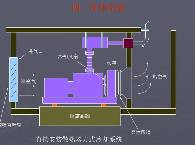 1.進(jìn)風(fēng)口宜設(shè)定在發(fā)電機(jī)端或發(fā)電機(jī)兩側(cè),面積應(yīng)大于水箱面積2.2倍。