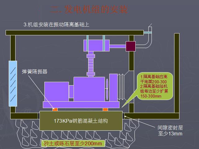 3. 機(jī)組安裝在振動(dòng)隔離基礎(chǔ)上: